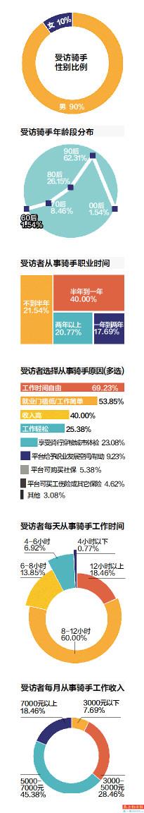 超六成骑手从业时间不足一年,近八成每天工作8小时以上