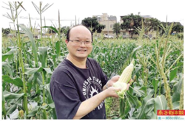 惠州市第一人民医院驻彭白村第一书记黄铭展示介绍扶贫产品“水果玉米”。 受访者供图