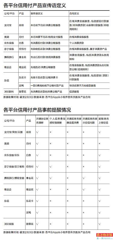 “信用支付最初就是为了让用户更多地使用平台自身的支付通道和支付账户,同时又能够在此基础上开展自己的信贷业务。在个人信用相关数据基础成熟的情况下,这是一个很好的入口”。支付行业资深专家、博通咨询首席分析师王蓬博对南都记者表示,“但对于普通消费者而言,这类产品明面上是支付,但实际上跟信贷相似,如逾期后会产生个人征信上的污点。这部分往往会被人们所忽略,这一点一定要对消费者说清楚”。
