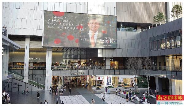 2月7日,“深圳感谢你”宣传海报在深圳各地亮屏,深圳万象天地,屏幕亮起宣传海报。