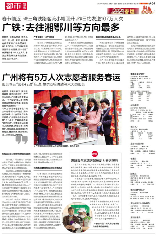 南都讯 记者叶孜文 实习生李春昊 通讯员穗团宣 在广州火车站、广州南站等主要站点,一个个身穿“绿马甲”的志愿者为旅客测量体温,指引旅客有序进站乘车……今年,广州青年志愿者在广州火车站等4个火车站点,海