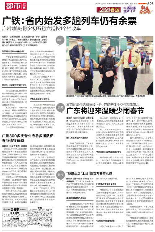 出行南都讯 记者钟丽婷 通讯员曾小贤 曾昕 温美春 陈子昕 机场宣 南都记者从广铁集团获悉,2月10日广铁预计发送旅客106万人次。10日当天加开列车54对,其中动车组50对,普速列车4对。到昆明