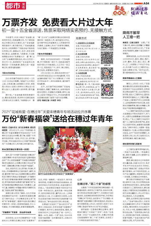今年春节,许多人响应广东省委、省政府的号召,选择留穗过年。为了满足就地过年群众的文化需求,在广东省电影局的指导下,南方都市报、广东省电影宣发平台、N视频携手广东联合电子服务股份有限公司、滴滴出行、快手