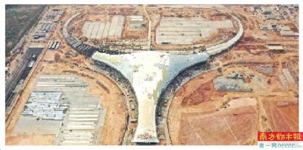 空中俯瞰位于吴川市塘缀镇的湛江国际机场,航站楼主体结构在春节前已基本完成,形如牛头,气势恢弘。