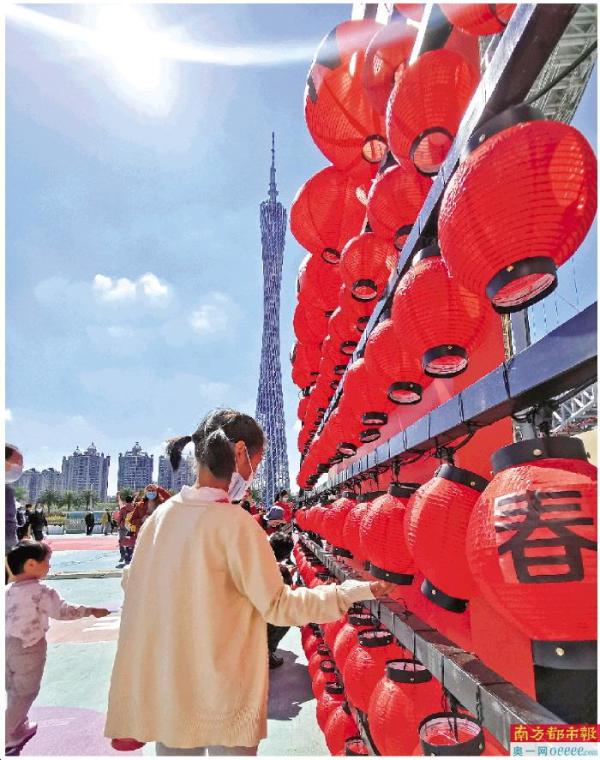 昨日,广州海心沙亚运公园,游客在广州园博会灯饰前驻足观看。园博会开放时间将延至正月十五。 郭广新 摄