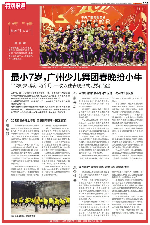 编者按牛年新春至,“牛人”讲故事。即日起,我们开设“新春‘牛人访’”系列专题报道,牛年春节访身边牛人,感受精气神,弘扬正能量。2月11日,除夕。今年的央视春晚舞台上,一群广州街舞少儿为全国观众带去
