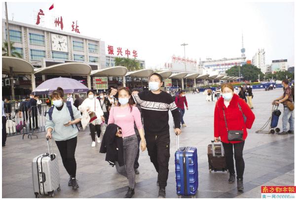 昨日,广州火车站,返程的旅客陆续出站。广东省公安厅交通管理局发布预测,2月17日起将出现节后返程高峰。 南都记者 张志韬 摄