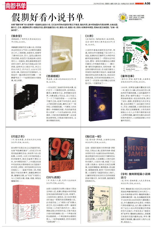 本期“南都书单”向大家推荐一组最新出版的小说,它们的共同特点是既好看又不难读,雅俗共赏。其中既有国内作家的新著,也有法国、爱尔兰、日本、美国等优秀小说家的作品。题材涵盖历史小说、爱情小说、推理小说、讽