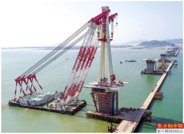 2月19日,随着重逾2000吨的桥塔在空中完成旋转后与钢箱梁顶面实现对接,珠海金海大桥首个钢主塔完成架设。金海大桥起自珠海横琴新区,跨越西江磨刀门水道,终至珠海机场东路,是珠机城际二期关键控制性工程,预计2023年可正式建成通车。 南方日报记者 何康杰 通讯员 谢珍 孟庆虎 摄