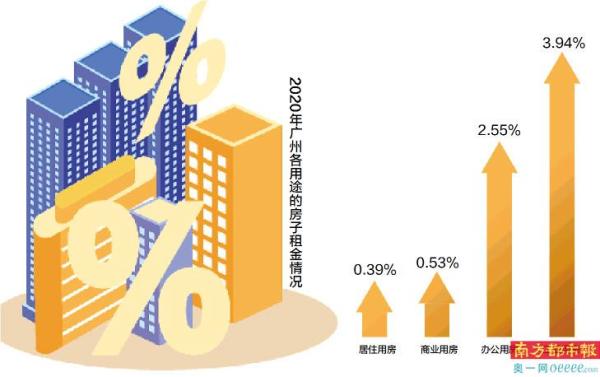 2月19日,广州市房地产租赁管理所公布了2020年广州市房屋租金参考价(以下简称2020年租金参考价)。从全市整体情况来看,2020年广州市各用途的租金保持平稳微涨,其中,全市居住用房租金价格整体上涨0.39%,商业用房租金较2019年上涨0.53%,办公用房租金上涨2.55%,工业用房租金上涨3.94%。受疫情影响,市场成交量有所下滑。