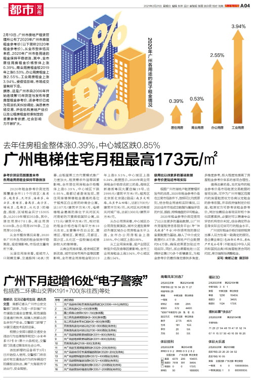 2月19日,广州市房地产租赁管理所公布了2020年广州市房屋租金参考价(以下简称2020年租金参考价)。从全市整体情况来看,2020年广州市各用途的租金保持平稳微涨,其中,全市居住用房租金价格整体上涨