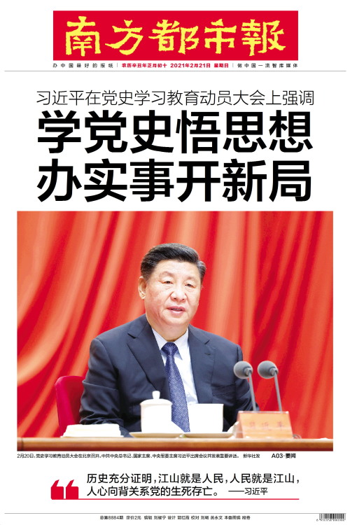 2月20日,党史学习教育动员大会在北京召开。中共中央总书记、国家主席、中央军委主席习近平出席会议并发表重要讲话。 新华社发 历史充分证明,江山就是人民,人民就是江山,人心向背关