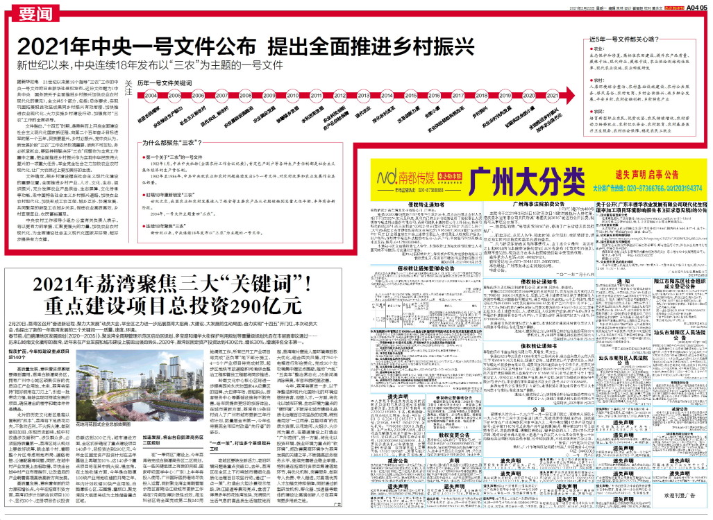 2021年中央一号文件公布 提出全面推进乡村振兴