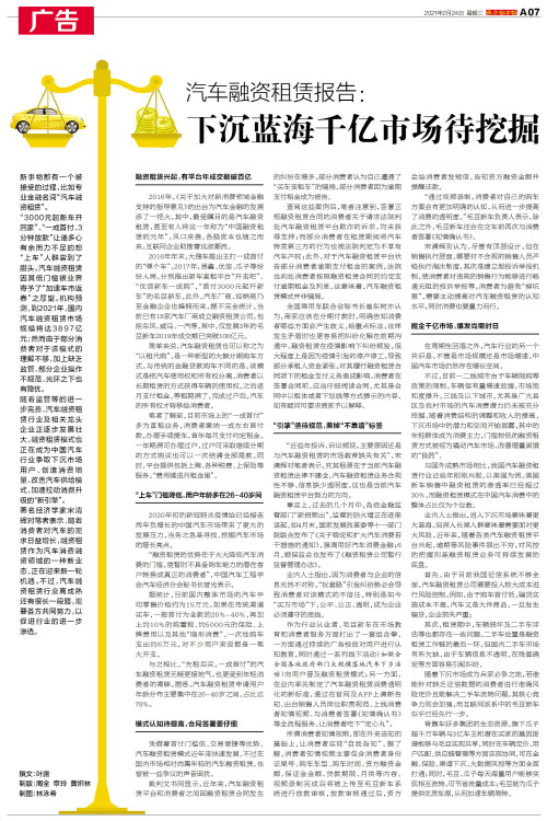 “3000元起新车开回家”、“一成首付,3分钟放款”让诸多心有余而力不足的想“上车”人群尝到了甜头。汽车融资租赁因其低门槛被业界寄予了“加速车市返春”之厚望。机构预测,到2021年,国内汽车融资租赁市场规模将达3897亿元;然而由于部分消费者对于该模式的理解不够,加上缺乏监管、部分企业操作不规范,光环之下也有隐忧。
