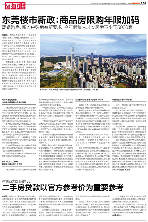 南都讯 东莞楼市新政来了,对商品住房限购年限进行了调整,对离婚购房、新入户购房有新要求。2月27日,东莞市住房和城乡建设局联合东莞市自然资源局、东莞市不动产登记中心、东莞市市场监督管理局、中国人民银行