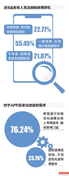 对于手机软件的适老化改进需求,南都记者调研发现,接近8成受访老人希望手机软件针对老人使用习惯进行功能优化或推出老人专用版本,降低使用门槛。