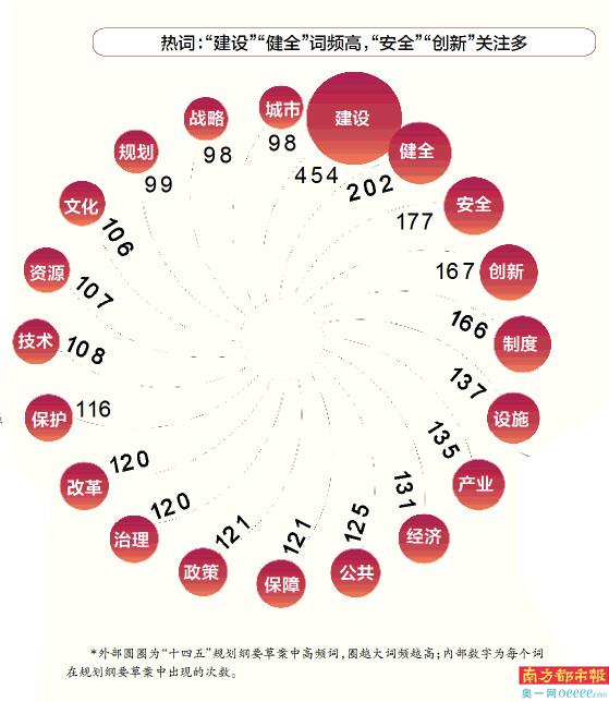 根据“十四五”规划纲要草案全文,我们梳理出了100多个高频词汇。“建设”“健全”是规划纲要草案中出现最多的词汇。