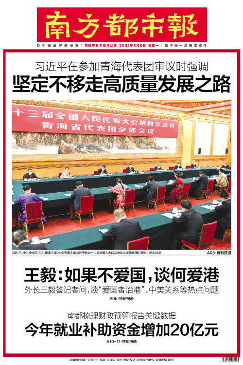 3月7日,中共中央总书记、国家主席、中央军委主席习近平参加十三届全国人大四次会议青海代表团的审议。 新华社发 详见:A03·特别报道
