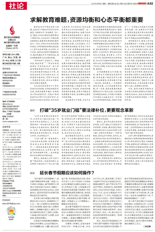 短评“35岁正是做事业的黄金年华,35岁就业门槛应该打破。”正在召开的全国两会上,人大代表蒋胜男的一则打破35岁就业门槛的建议引发舆论热议。蒋胜男表示,仅用一条年龄限制将35岁人群排除在录用范围之