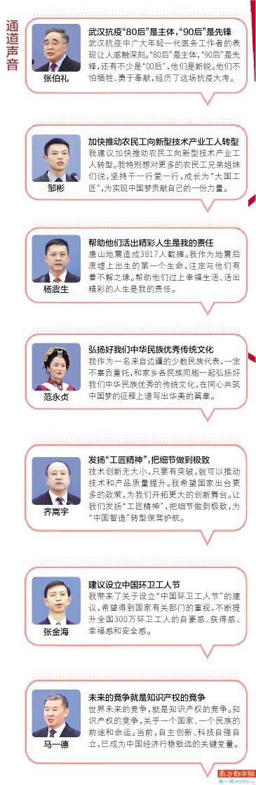 昨日14时许,十三届全国人大四次会议第二场“代表通道”开启。7位来自不同行业领域的基层全国人大代表通过网络视频回答记者提问,一句句发自肺腑的履职心声和感受,催人奋进。