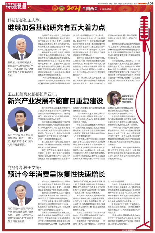 全国两会 之 部长通道 继续加大基础研究投入。现在是6%,我们争取“十四五”使基础研究占全社会研发投入的比重达8%左右。 如何提升基础创新能力?科技体