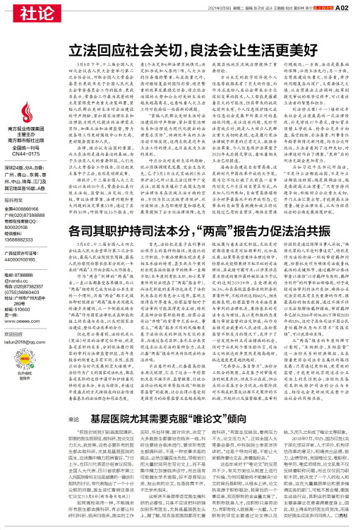 来论“前段时间我们到县医院调研,那里的医生很苦恼,做科研、发论文压力太大。我觉得,没有必要所有的医生都去做科研,尤其是基层医院的医生,应该集中精力把病看好。”7日上午,在四川代表团分组审议现场,全