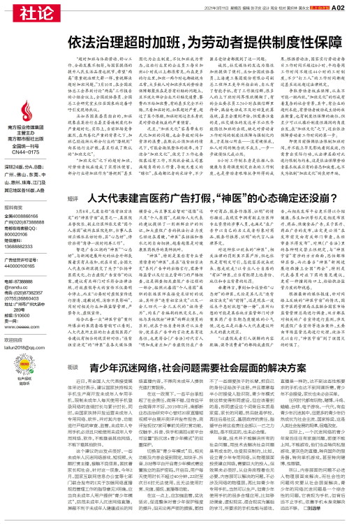“超时加班与体面劳动、舒心工作、全面发展不相符,与国家提倡的提升人民生活品质也脱节。希望‘两高’像重视治理欠薪一样,重视解决超时加班问题。”3月10日,在全国政协总工会界别讨论“两高”工作报告的小组会