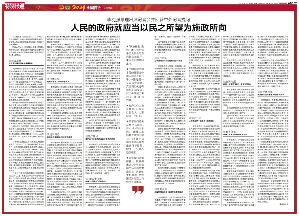 ●“民生在勤,勤则不匮”。我相信中国人民会用自己勤劳的双手,来逐步迈向共同富裕。●中国发展的根本目的是要让中国人民过上好日子,中国还是一个发展中国家,实现现代化还有很长的路要走。我们会立足于着力办好自