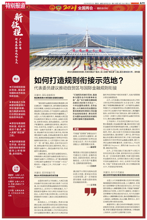 要点打造规则衔接示范地,塑造参与国际合作和竞争新优势。 举全省之力落实建设粤港澳大湾区国家战略,强力推进深圳先行示范区建设和综合改革试点。 抓住与港澳规则衔接、机制对接这个重点,深入实施“湾区通”