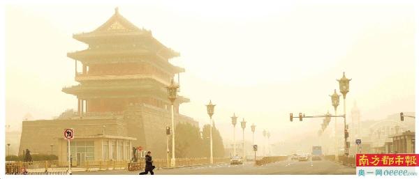 3月15日在北京市正阳门附近拍摄的沙尘天气。当日,北京市遭遇沙尘天气。 新华社发