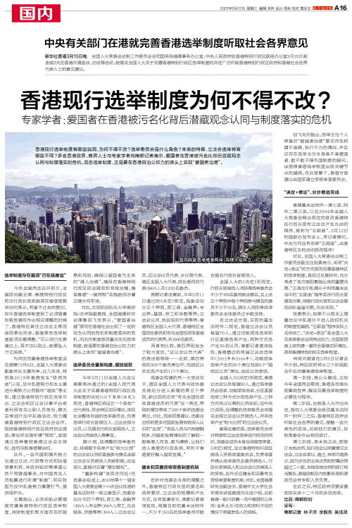 香港现行选举制度有哪些漏洞,为何不得不改?选举委员会是什么角色?未来的特首、立法会选举将有哪些不同?多名香港政界、商界人士与专家学者向南都记者表示,爱国者在香港被污名化背后潜藏观念认同与制度落实的危机