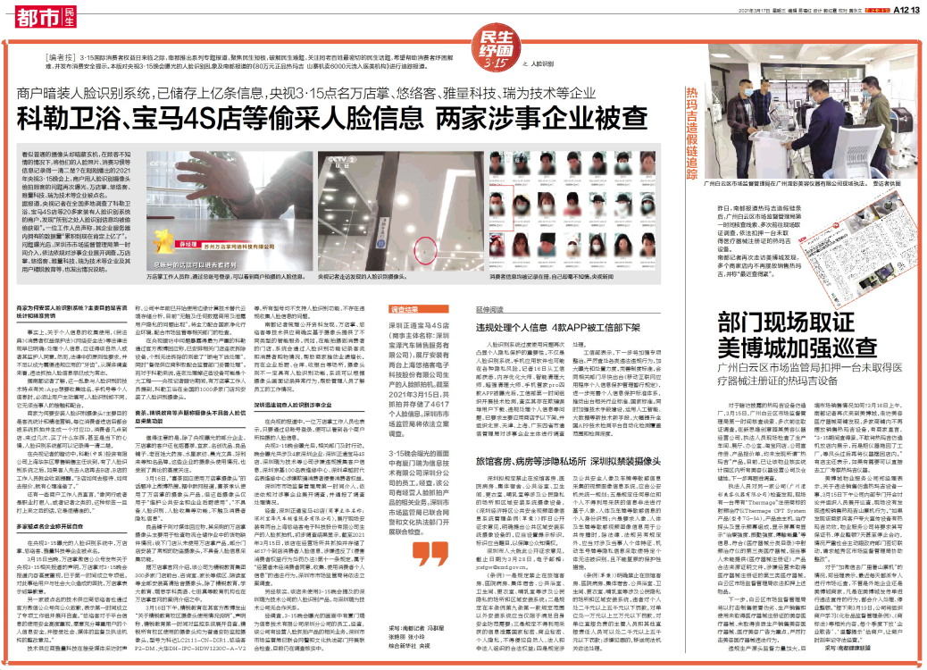 科勒卫浴、宝马4S店等偷采人脸信息 两家涉事企业被查