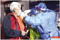3月14日,在北京市海淀区永定路街道新冠疫苗临时接种点,医护人员为社区老年人接种。近日,全国多地开始为60周岁以上居民接种新冠疫苗。 新华社发 详见:A08-09·都市发布