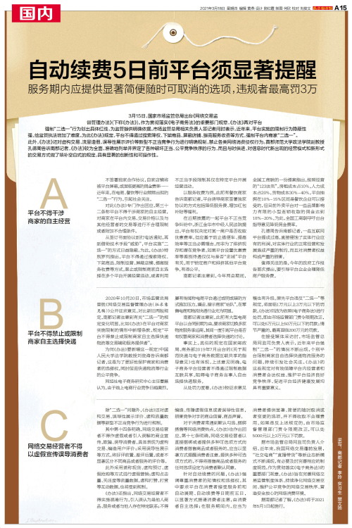 3月15日,国家市场监管总局出台《网络交易监督管理办法》(下称《办法》)。作为贯彻落实《电子商务法》的重要部门规章,《办法》再对平台强制“二选一”行为划出具体红线,为监管提供明确依据。市场监管总局相关