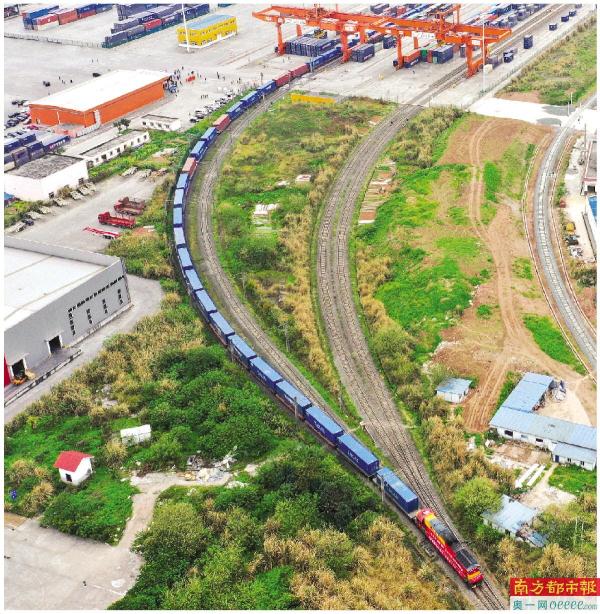 3月19日,重庆团结村中心站,一列印有“十周年纪念专列”字样的中欧班列缓缓驶出站台,驶向一万多公里外的德国杜伊斯堡。10年前的3月19日,也在重庆团结村中心站,我国第一列中欧班列“渝新欧”在此始发。10年来,中欧班列从无到有,从青涩到成熟,助力“一带一路”沿线国家互联互通、合作共赢。 新华社发