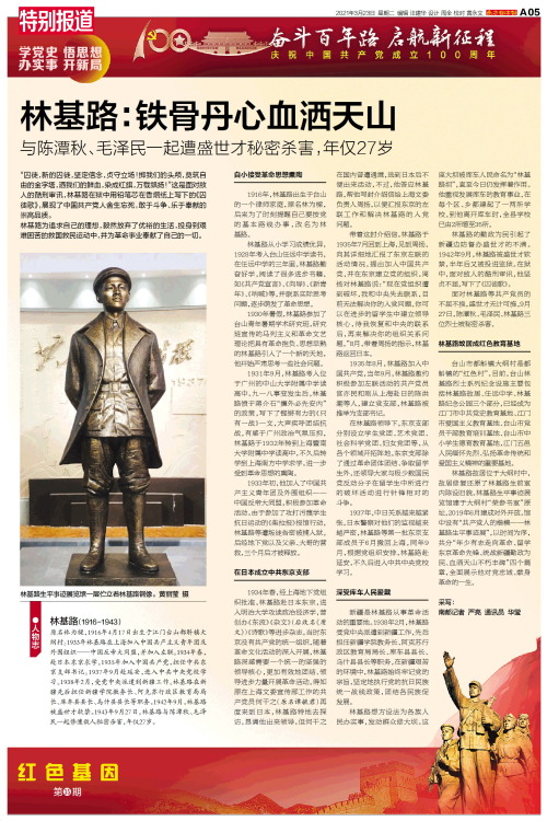 1916年,林基路出生于台山的一个律师家庭,原名林为樑,后来为了时刻提醒自己要按党的基本路线办事,改名为林基路。