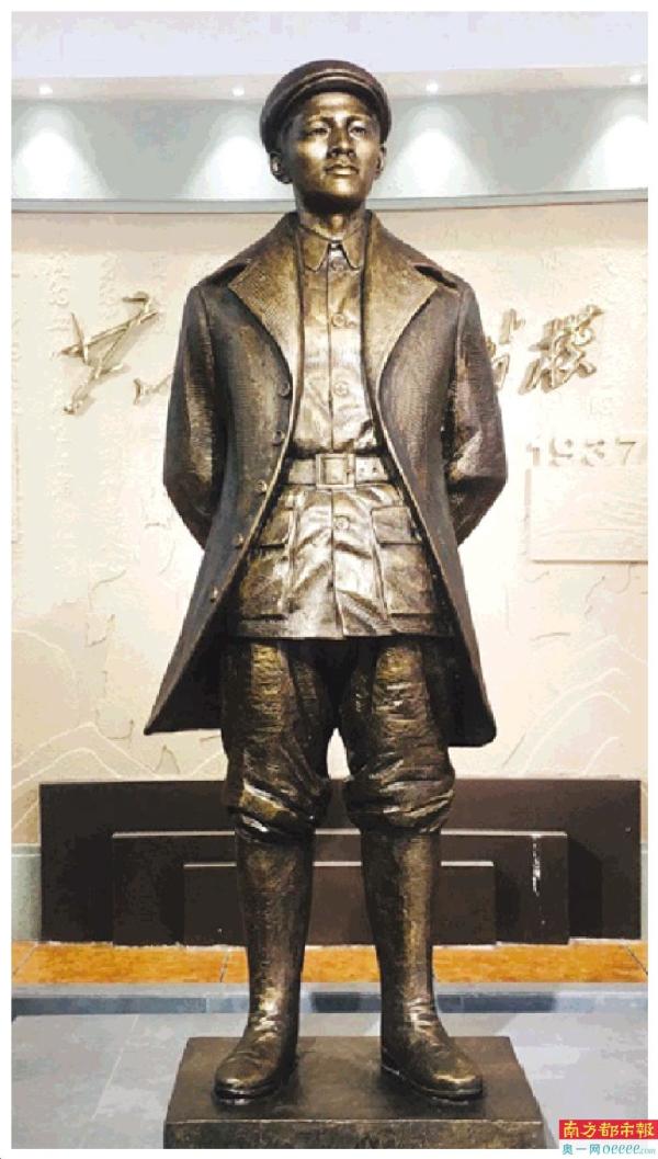 林基路生平事迹展览馆一层伫立着林基路铜像。 黄丽莹 摄