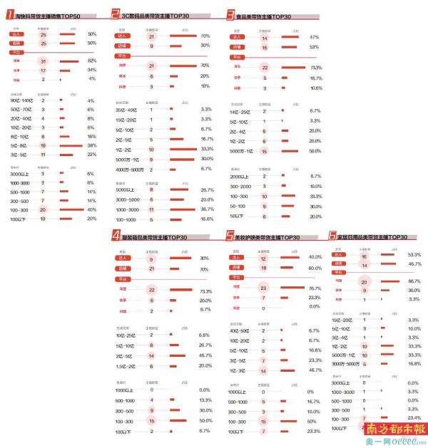 《报告》显示,在服饰箱包的TOP30主播榜单中,店铺主播的比例从上一季度的16.7%上升至第四季度的30%。上榜主播的成交额区间,也从前一季度最低的7000万-8000万、最高的2亿-10亿,上升至最低1.5亿-2亿、最高10亿-25亿。
