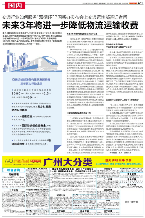 未来3年将进一步降低物流运输收费