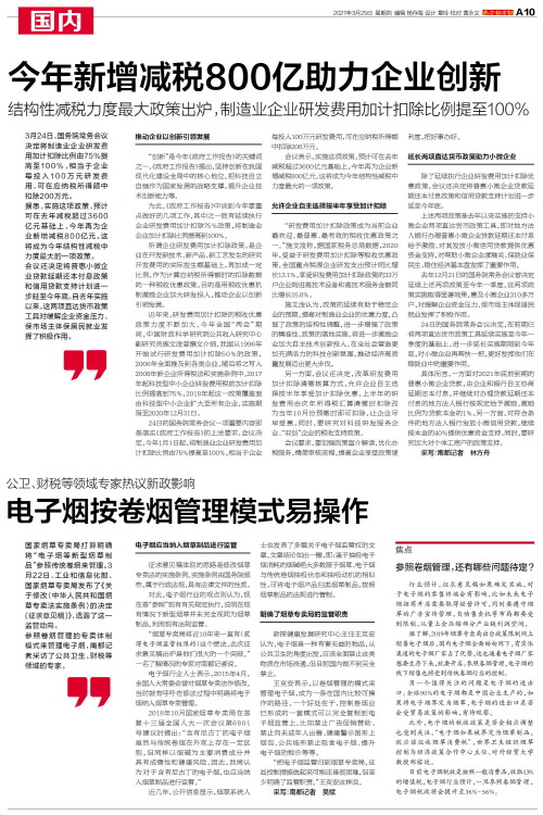 3月24日,国务院常务会议决定将制造业企业研发费用加计扣除比例由75%提高至100%,相当于企业每投入100万元研发费用,可在应纳税所得额中扣除200万元。据悉,实施这项政策,预计可在去年减税超过36