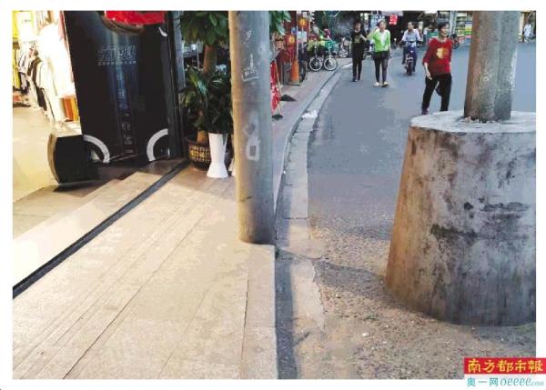 去年9月,南都记者走访看见敦和路周边住宅小区多,出行人流量大。除孟先生提出的问题,人行道还存在缓坡角度过大、违停车辆占用、商铺占用等问题。同年10月,南都“记者帮”对敦和路的人行道问题进行了报道。