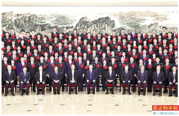 上午10时,习近平等来到京西宾馆会议楼前厅,全场响起热烈掌声。习近平等走到代表们中间,同大家亲切交流并合影留念。