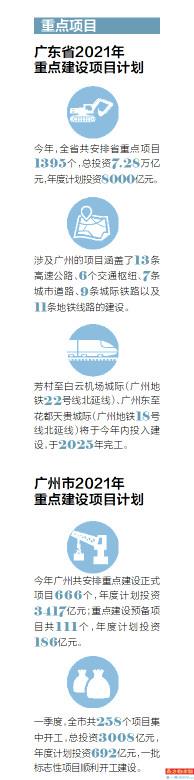南都讯 南方日报记者黄舒旻 日前,省发展改革委在其官网上发布了《广东省2021年重点建设项目计划》。今年,全省共安排省重点项目1395个,总投资7.28万亿元,年度计划投资8000亿元。据记者不完全统计,其中有约十分之一的项目涉及广州,投资金额突破千亿级规模。从城际铁路到综合枢纽,从重大平台到物流园区,从医疗机构到文体场馆……2021年,广州以重点项目建设为抓手,跑出“十四五”开局起步的快节奏与加速度。