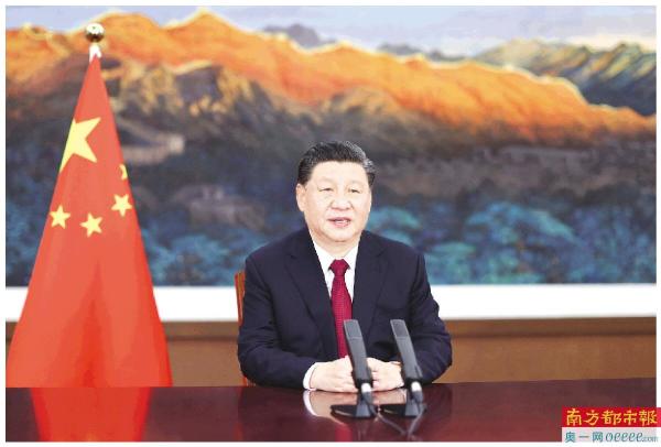 昨日上午,博鳌亚洲论坛2021年年会开幕式在海南博鳌举行,国家主席习近平以视频方式发表题为《同舟共济克时艰,命运与共创未来》的主旨演讲。 新华社发