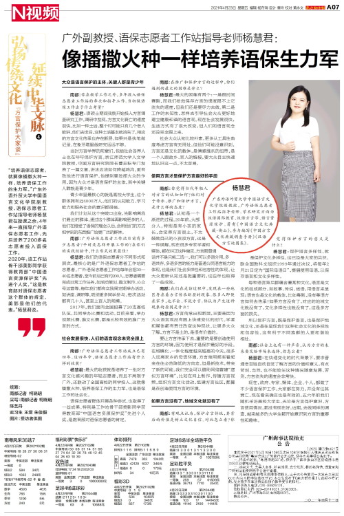 杨慧君 广东外语外贸大学中国语言文化学院副教授,广外语保志愿者工作站指导老师。学术研究方向为汉语国际教育、汉语方言学、语言资源保护。著有《中国语言文化典藏·衡山》,参与编写《中国方言