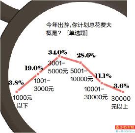 今年出游打算花多少钱?调查发现,34%的受访者今年出游预算在3001-5000元,28.6%的受访者打算花费5001-10000元,旅游预算在一万元以上的仅占14.7%。这可能与公众出游目的地有关系,从调查数据来看,今年选择周边游、短途游的受访者居多,且节假日高速通行免费,一定程度上节省了交通成本。