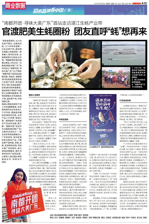 “我老家是潮州,从小对生蚝不陌生,也喜欢吃蚝。几十年来却是第一次走近原产地。看到漂在海面上的蚝排和一串串垂入海中的生蚝,近距离观察它们的生长环境。”漫画家颜庆雄对南都记者说。4月24日,“沿着高速看中