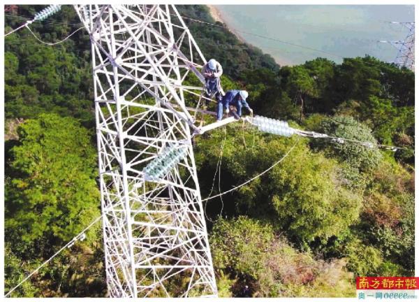 广东肇庆供电局输电管理所线路七班成员正在进行高空作业。