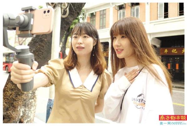 来自中国香港的暨南大学国际新闻专业学生马欣瑞(右)和南都记者一道游览老西关。