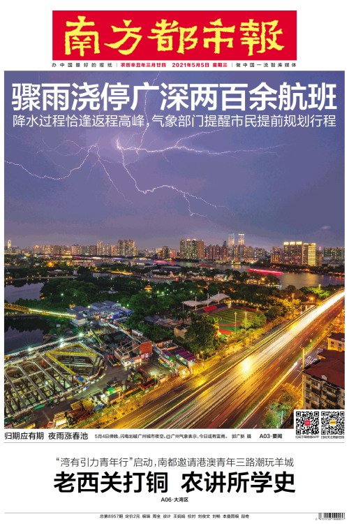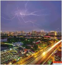 5月4日傍晚,闪电划破广州城市夜空。@广州气象表示,今日或有雷雨。 郭广新 摄详见:A03·要闻